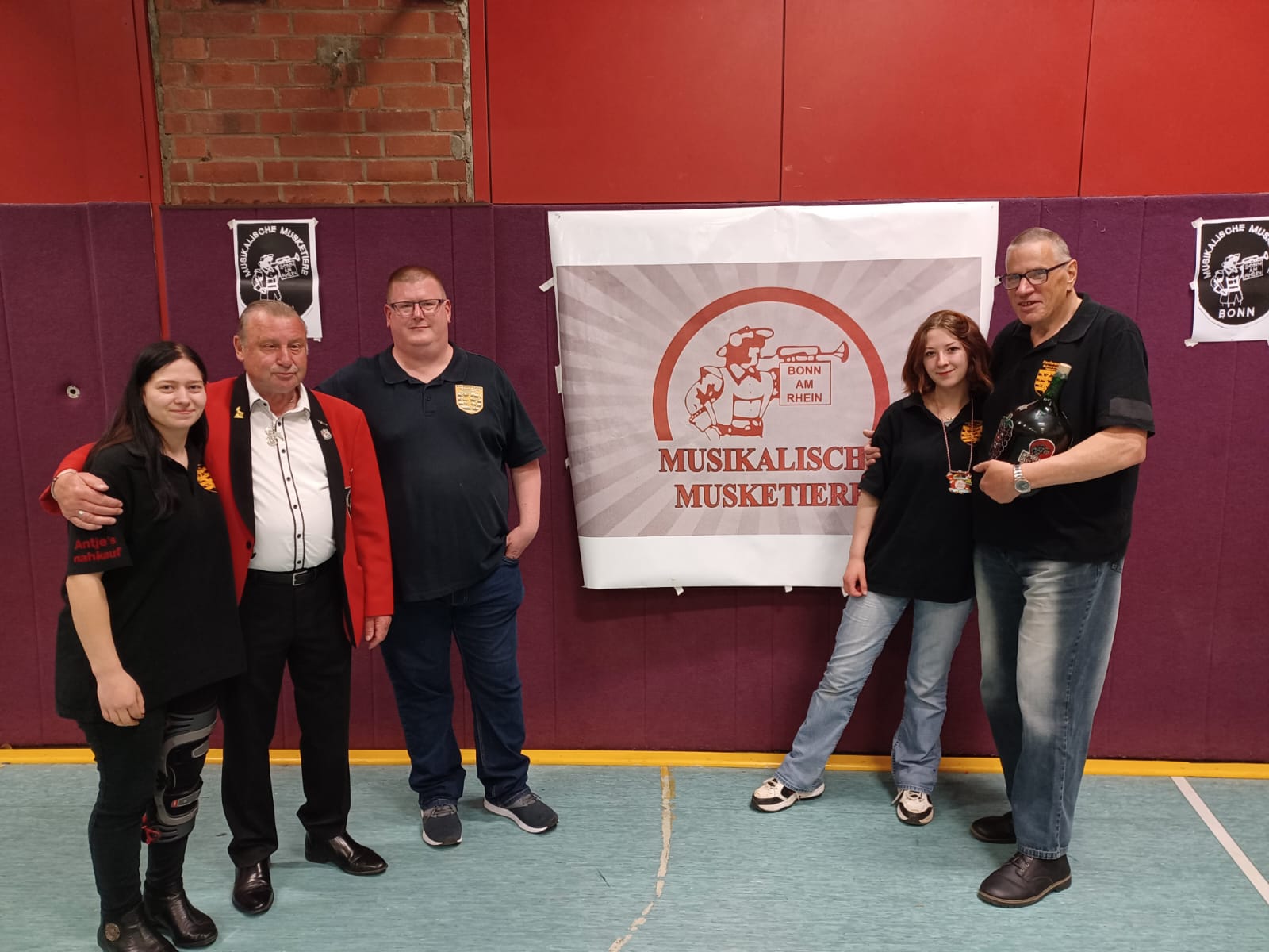Am heutigen Samstag Abend waren wir wieder mal bei den Musikalischen Musketiere in Bonn-Dransdorf zu einem kleinen Auftritt. Wir gaben Alles um den (leider) nicht gerade stark frequentierten Saal zum kochen zu bringen, was uns auch Bestes gelang. Es wurde mitgesungen, geschunkelt und unser Auftritt zu einem unvergesslichen Erlebnis gemacht. Als Dank bekam unsere „Ersatz-Paukistin“ Kiki einen Dankesorden verliehen, sowie unserer ganzer Trupp eine große Flasche Wein. Auf der Heimreise enterten wir den Regionalzug und spielten den Fahrgästen ein spontanes Ständchen, die dies mit Applaus quittierten und wir total erschöpft aber glücklich in Linz ankamen. Im Großen und Ganzen muss man sagen, hatten wir einen Rundum gelungenen Abend und eine Menge Spaß